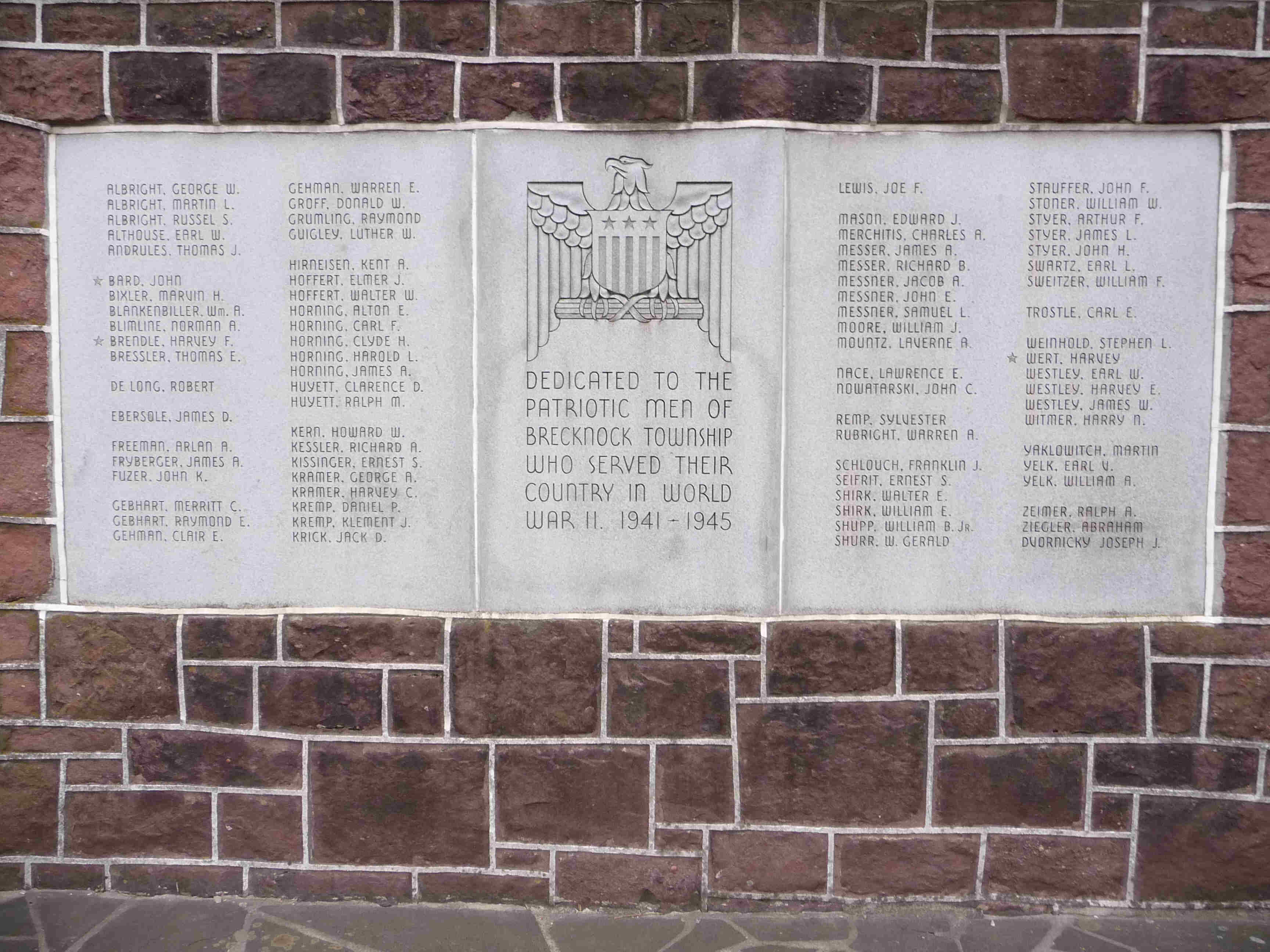 Dedicated to the patriotic men of Brecknock township who served their country in World War II. 1941-1945.