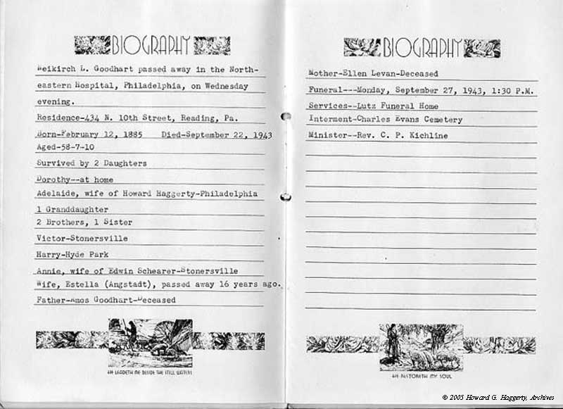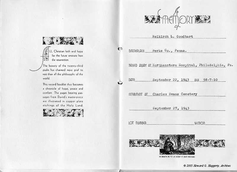 The following pages are from the Memorial record for Neikirch L. Goodhart who died September 22, 1943.