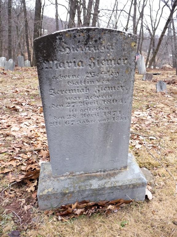 | Ziemer, Maria (nee Westley) | April 27, 1804 | April 28, 1871 | aged 67y,1d; wife of Jeremiah Ziemer; picture |