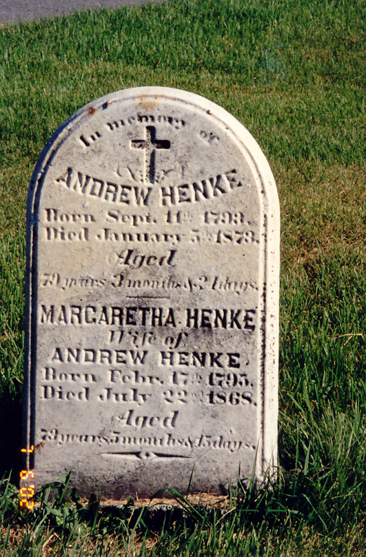 | Henke, Andrew | Sept 11 1793 | Jan 5 1873 | Ruth |