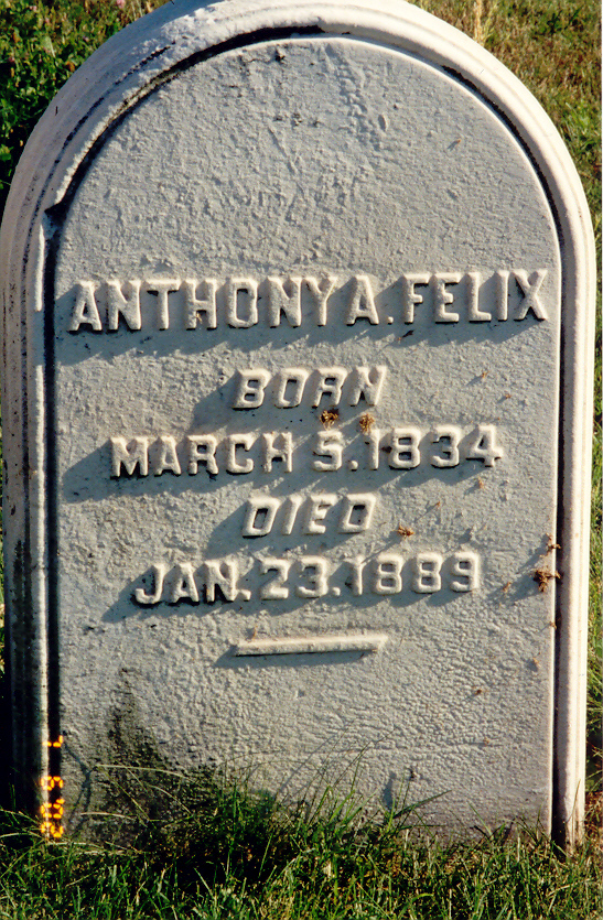 | Felix, Anthony A. | Mar 5 1834 | Jan 23 1889 | Ruth |