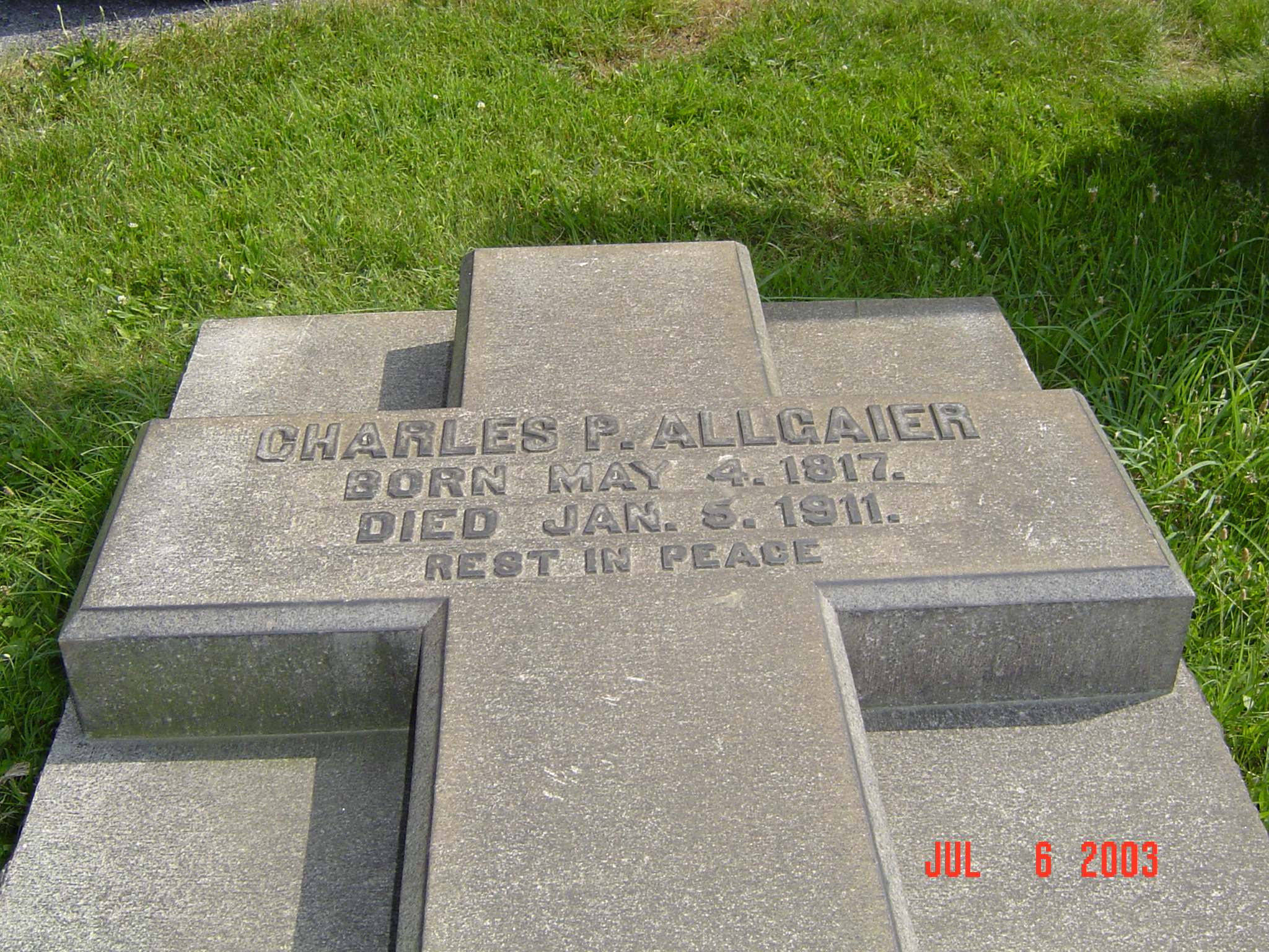 | Allgaier, Charles P. | May 4 1817 | Jan 5 1911 | Ruth |