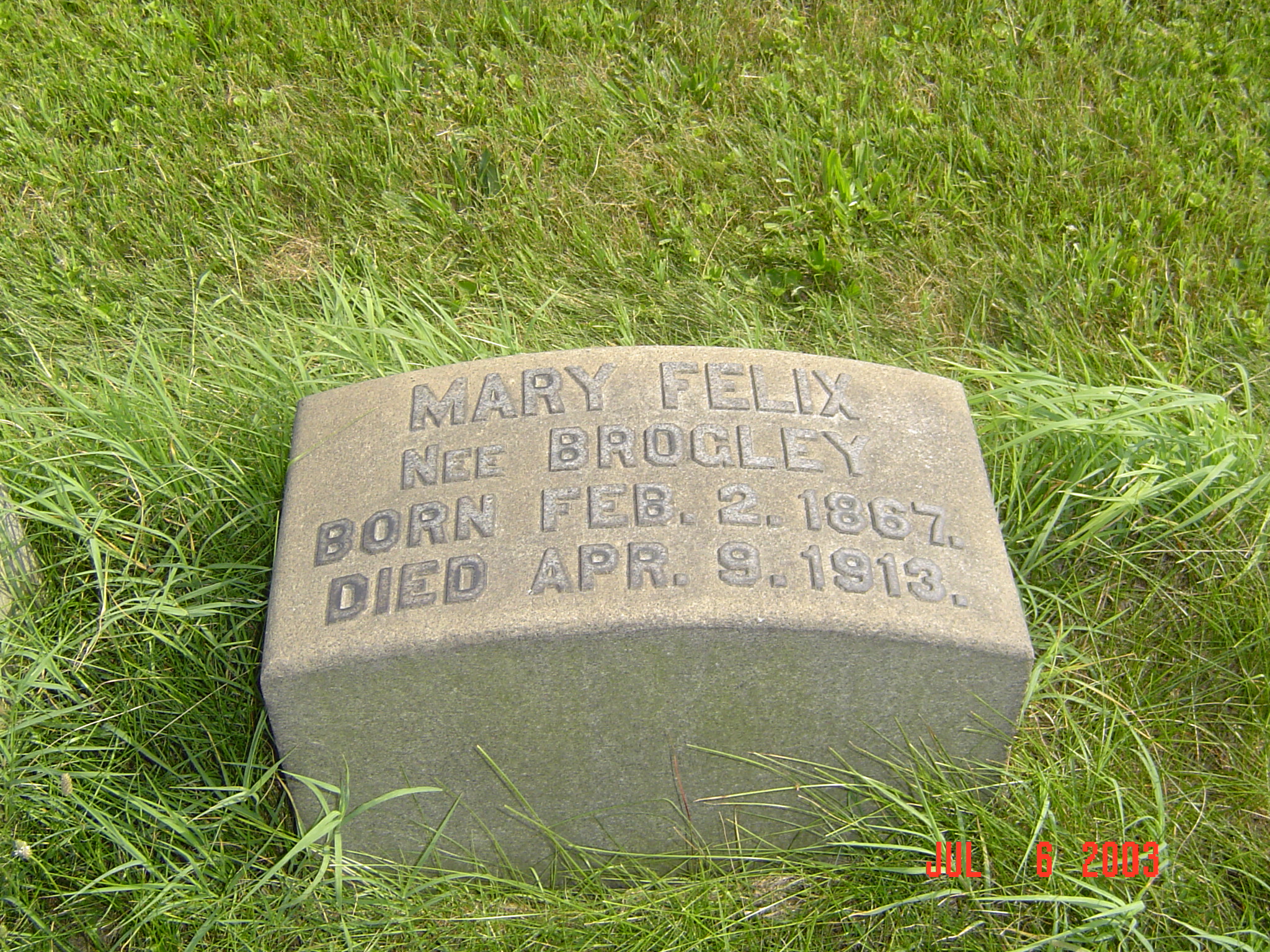 | Felix, Mary (nee Brogley) | Feb 2 1867 | Apr 9 1913 | Ruth |