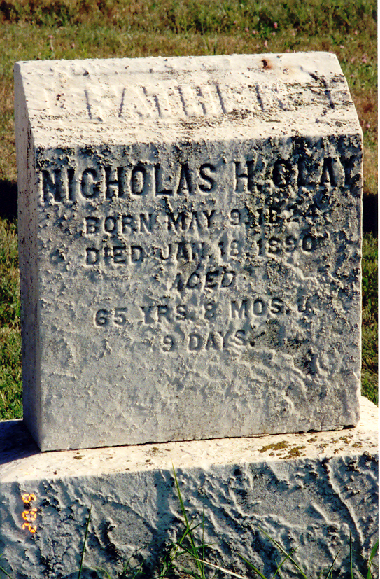 | Clay, Nicholas H. | May 9 1824 | Jan 18 1890 | Ruth |