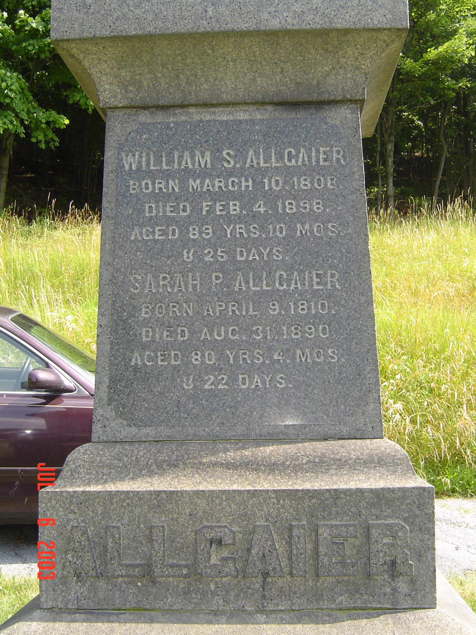 | Allgaier, William S. | Mar 10 1808 | Feb 4 1898 | Ruth |